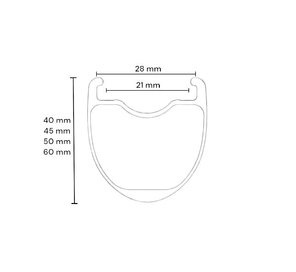 - Profile of the rim - i.e. the height of the rim - Our DKBIKE Feather is available in 40mm, 45mm, 50mm and 65mm profile. Read any more about choosing profile here